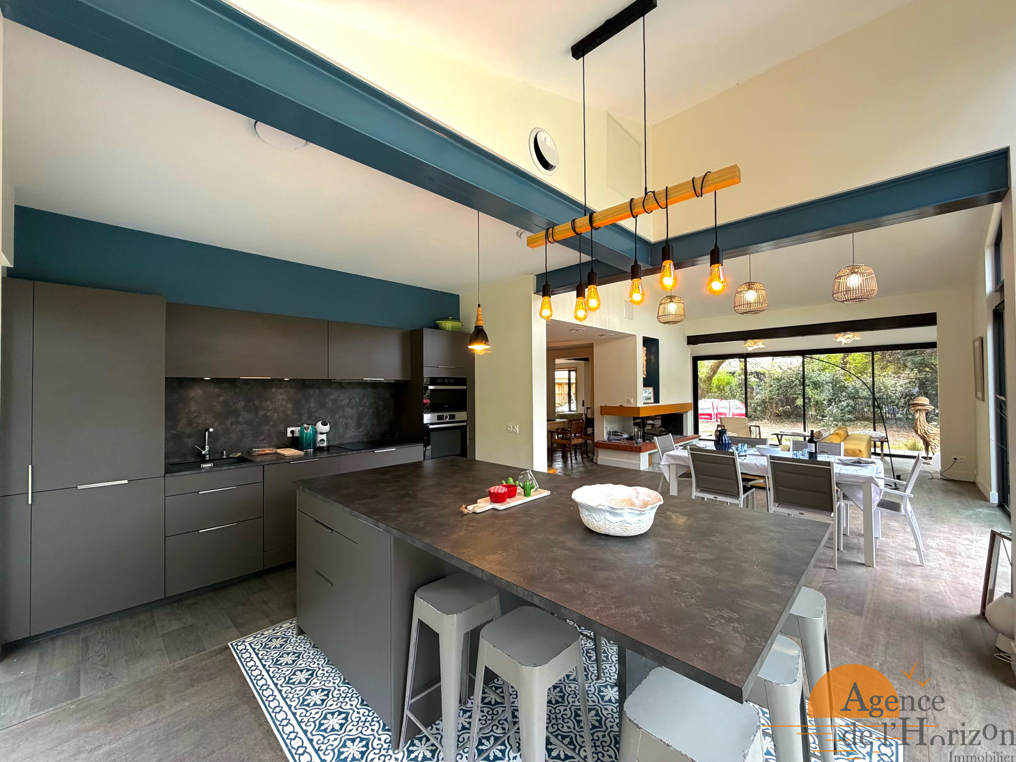 Superbe villa entièrement rénovée et climatisée, inspirée de l’esprit du Bassin d’Arcachon, offrant de beaux volumes et une décoration soignée avec mobilier de qualité. Les espaces de vie lumineux s’ouvrent sur une grande terrasse aménagée, idéale pour les repas et moments de détente, en intérieur comme en extérieur.