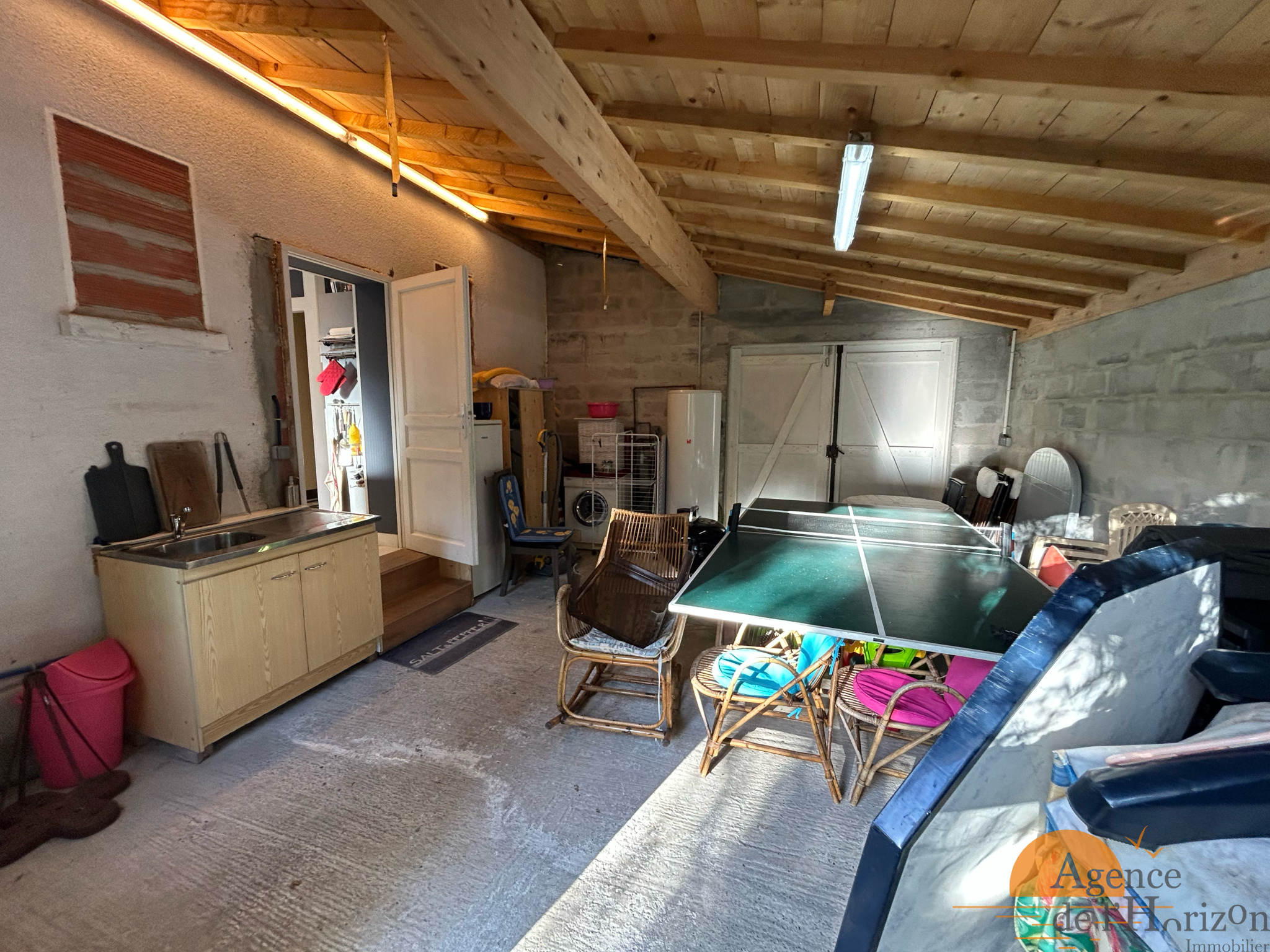 Un garage attenant de plus de 26 m² complète l’ensemble.