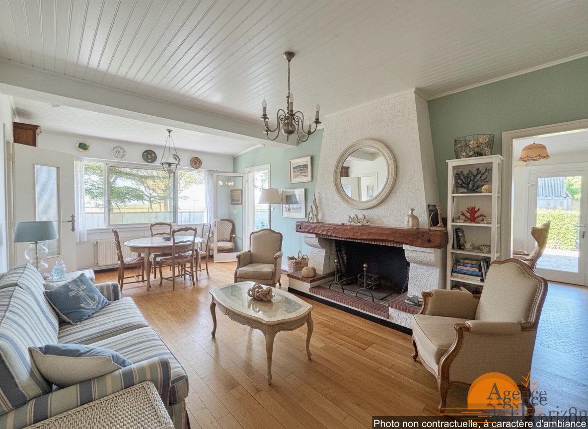 La maison dispose d'une surface habitable de 118 m² et se compose d’un salon-séjour avec cheminée, d’une cuisine indépendante, de quatre chambres confortables et d’une salle de bains.